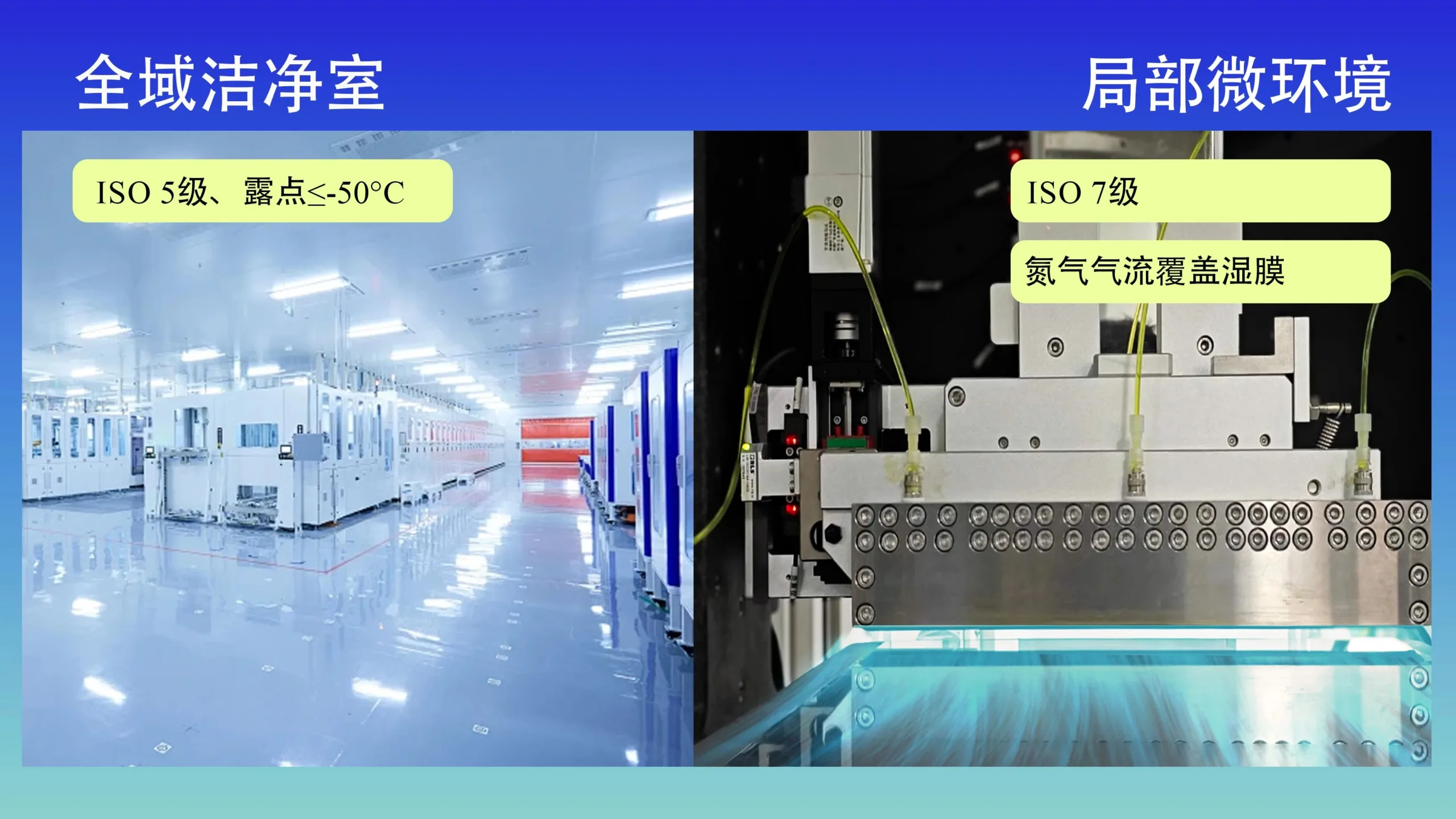 一种是全域高规格洁净室方案,另一种则局部精准微环境方案